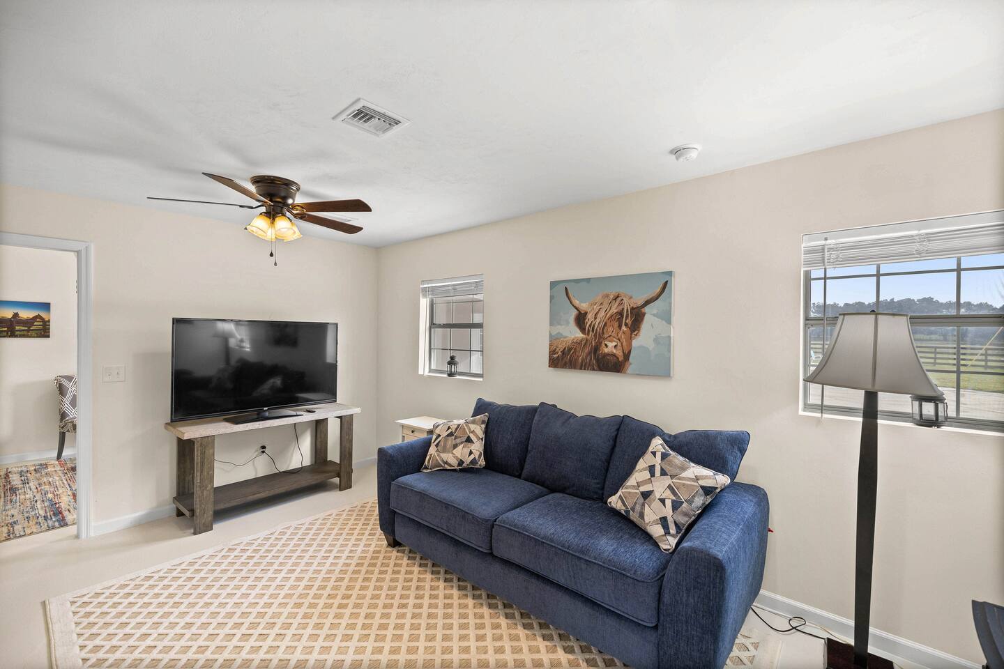 The Ranch & The Guesthouse at Majestic Meadows are perfect for larger groups, retreats, or families who are looking to stay together but have some privacy from each other. You are on the same property, but have your own separate living spaces. • 15 minutes to the World Equestrian Center • 7 minutes to HITS • 40 minutes from the University of Florida & Gainesville • 1 1/2 hours from Disney, Sea World, & Orlando • 2 hours from Jacksonville & St Augustine • 45 minutes from Crystal River • 2 hours from Tampa The Ranch - 4 bedrooms (5 beds) - 2.5 bathrooms - Large well appointed open kitchen, double oven - Large living room opens into kitchen w/ smart tv - 2 dining areas - Laundry room - Front porch - Gorgeous screened in back porch - Outdoor grill - Firepit - Board games The Guesthouse - 1 bedroom - 1 bathroom w/ shower - Brand new kitchen - Large living room w/ smart tv - Separate Front porch - Outdoor grill - Firepit The Ranch & Guesthouse are situated in the middle of 58 of the most beautiful pastures in Florida, but close enough to everything in our area. A great place for day trips!